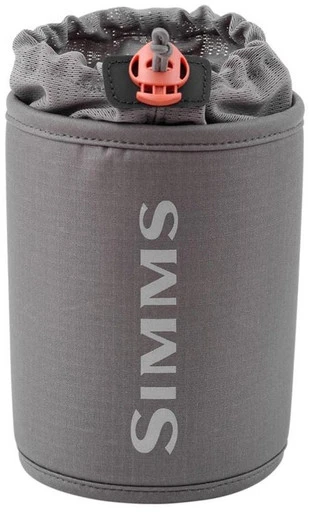 The Simms PG-12303 Bottle Holder – Small fits up to a 24-ounce water bottle and attaches to all Simms packs, bags, and wading belts. A stretchy mesh collar eliminates fumbling when you grab and return bottles. A bottom drain lets you wade into deep waters, and foam insulation keeps your beverage cold and fresh.