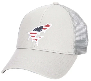 The Simms USA Catch Trucker Hat will keep your head cool and comfortable with its mesh trucker style. Featuring a patriotic fish design on the front. This hat is made with a low crown fit and 100% cotton twill material.